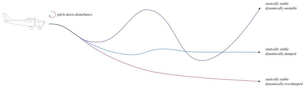 | Keywords: Aircraft dynamic longitudinal stability.svg thumb Note that aircraft can also by statically unstable Diagram showing the three main cases for aircraft pitch dynamic stability Here all three cases are for a statically stable aircraft Following a pitch disturbance three cases are shown Aircraft is dynamically unstable although statically stable ; Aircraft is dynamically damped and statically stable ; Aircraft is dynamically overdamped and statically stable 2012-03 own schematics File C 172 line drawing svg Aircraft drawing public domain by User Werneuchen Olivier Cleynen and User Werneuchen cc-zero Uploaded with UploadWizard Aircraft stability diagrams SVG aviation |