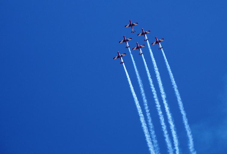 Keywords: aircraft fly formation sky flyer travel blue aviation light aircraft sport aircraft take off propeller contrail formation flight free to watch attraction difficult dangerous flight air air show