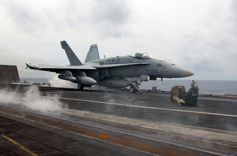 Keywords: aircraft launch aircraft carrier ship usa navy military fighter plane airplane jet take off mission f-18 hornet