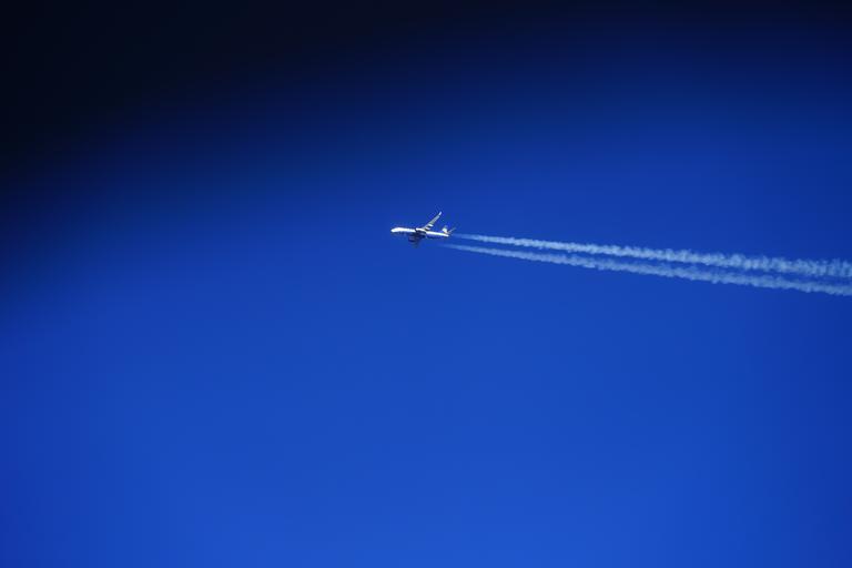 Keywords: aircraft sky contrail sky blue blue passenger aircraft travel holiday travel fly away