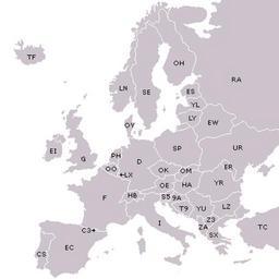 | Keywords: AircraftRegistrationPrefixes-Europe.png AircraftRegistrationPrefixes-Europe svg A map displaying the aircraft registration prefixes for countries in Europe The city states of Monaco San Marino and Vatican City have been omitted from the map Created by PeepP on March 8 2006 for use in the en Aircraft registration article based on BlankMap-Europe png Source en Aircraft registration version from 14 41 February 27 2007 <sup>http //en wikipedia org/w/index php title Aircraft_registration oldid 111310013 permalink</sup> Prefix Country - CS Portugal - D Germany - C3 Andorra - G United Kingdom - I Italy - EC Spain - EI Ireland - ER Moldova - ES Estonia - EW Belarus - F France - HA Hungary - HB Switzerland - HB Liechtenstein - LN Norway - LX Luxembourg - LY Lithuania - LZ Bulgaria - OE Austria - OH Finland - OK Czech Republic - OM Slovakia - OO Belgium - OY Denmark - PH Netherlands - RA Russian Federation - SE Sweden - SP Poland - SX Greece - S5 Slovenia - TC Turkey - TF Iceland - T9 Bosnia and Herzegovina - UR Ukraine - YL Latvia - YR Romania - YU Serbia and Montenegro - ZA Albania - Z3 Macedonia - 5B Cyprus - 9A Croatia Aviation maps |