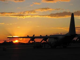 Keywords: airfield airplane aircraft sunset c-130 twilight propellers