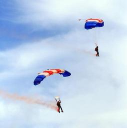 | Keywords: airplane aviation blue celebration chute cloud demonstration descend dive drop event extreme fall falling flight fly flying freefall glide glider gliding hang jump landing man military para parachute parachutist paraglide paraglider paragliding paratrooper red risk sail skill sky skydive skydiving smoke soar sport team training white |