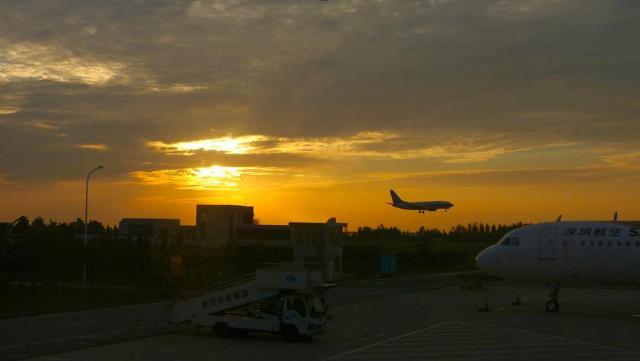 Keywords: airport plane runway airplane landing field flying flight silhouettes