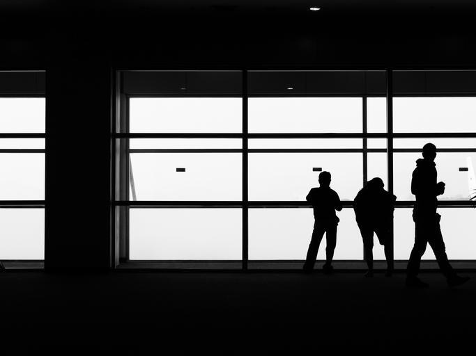 Keywords: airport thailand chiangmai white black geometry silhouettes shadow window people travellers