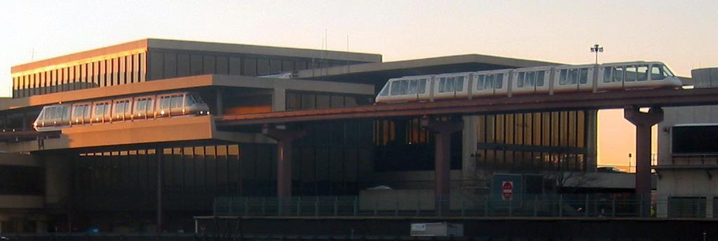 Keywords: Airtrain.jpg Aeropuerto Internacional Libertad de Newark The AirTrain monorail at Newark Liberty International Airport In this photograph one train is about to enter the station at Terminal A and the other is leaving Terminal A The monorail connects the Newark Liberty International Airport train station with all terminals Terminal A Terminal B Terminal C and four on-premises parking lots and garages P1 P2 P3 P4 Rental car agencies at Newark use lots P2 and P3 and all local hotel shuttles stop outside station P4 2005-01-27 own assumed Tshevlin~commonswiki AirTrain Newark Newark Liberty International Airport |