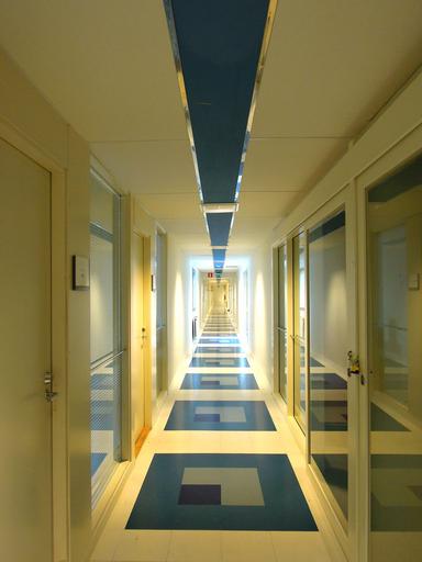 Keywords: aisle long depth the doors of the windows office workplace buildings business building