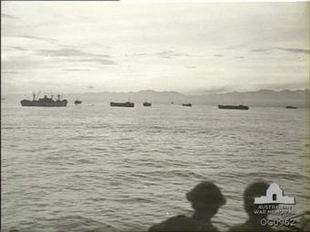 Keywords: Aitape Area during allied landing.jpg AITAPE AREA NORTH EAST NEW GUINEA 1944-04-22 US AND RAAF TROOPS WATCH FROM THE DECK OF A LANDING SHIP TANK LST THE ALLIED CONVOY COMING IN FOR THE LANDING AT KAROKO VILLAGE NEAR AITAPE OG0962 1944-04-22 Harrison John Thomas PD-Australia <br />The copyright has expired because this photo was taken prior to January 1 1955 The AWM record for this photo states that the copyright status is 'clear' The AWM however requires that the AWM watermark is not removed and that permission be sought for commercial use Higher resolution versions of this image may be ordered through the AWM Website at www awm gov au New Guinea campaign Black and white photographs of warships John Thomas Harrison |