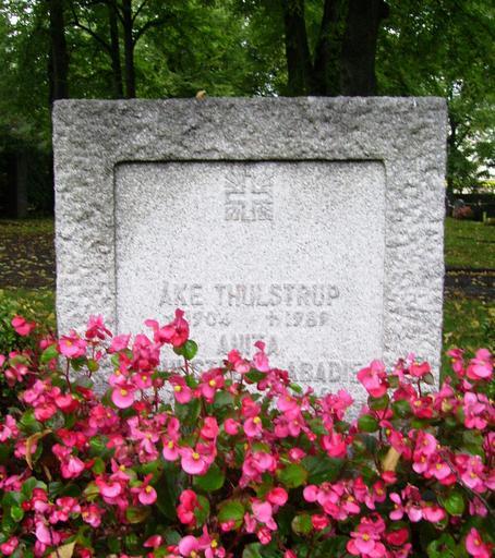 Keywords: Åke Thulstrup.Södertälje.JPG en Picture of Åke Thulstrup's grave at Södertälje kyrkogård sv Foto av Åke Thulstrups gravvård på Södertälje kyrkogård own Raphael Saulus Åke Thulstrup Graves in Sweden Södertälje kyrkogård
