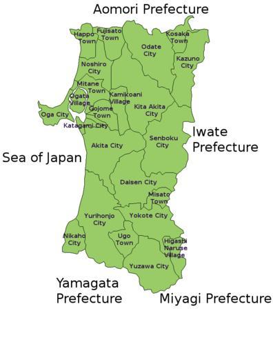 Keywords: Akita Prefecture cities and towns.png The cities of Akita Prefecture Japan as well as towns that aren't part of cities and villages that aren't part of towns or cities Maps of Akita prefecture English language maps of Japan 2007-10-08 Own work Douglaspperkins |