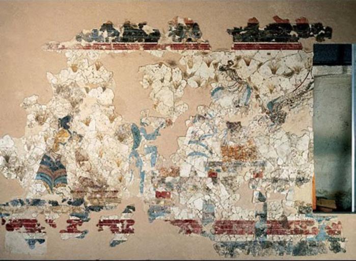 MAKE A MEME View Large Image Akrotiri Mistress of animals.jpg bronze age fresco of a woman on a throne with two female adorants in front and a griffin behind her Found at the Akrotiri Site on the Greek island Santorini building Xeste 3 Room 9 Northern Wall Thera ...