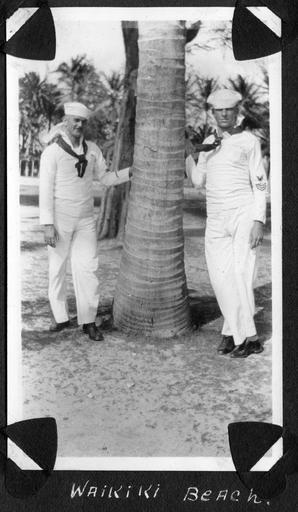 | Keywords: us navy usnavy radioman canal zone canalzone hawaii oahu waikiki waikiki beach waikikibeach sailor sailors usn united states navy unitedstatesnavy palm tree palmtree blackandwhite monochrome photo border black and white From a photo album belonging to C.W. Allen. Repository: San Diego Air and Space Museum Archive From a photo album belonging to C.W. Allen. Repository: San Diego Air and Space Museum Archive | ||||