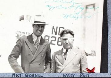 Keywords: luke luqueer lukeluqueer aviation golden age goldenage aviator arthur c. goebel arthurcgoebel arthur goebel arthurgoebel art goebel artgoebel goebel aviators wiley post wileypost post nc926y lockheed lockheed vega lockheedvega lockheed vega 5 lockheedvega5 lockheed vega 5b lockheedvega5b vega vega 5 vega5 vega 5b vega5b aircraft airplane c/n 134 cn134 From the Frank S. "Luke" Luqueer Photo Collection The Frank S. "Luke" Luqueer Photograph Collection is composed of 4 large albums covering from the 1920s to the 1950s. The albums contain historic photos and correspondences from many important historical figures such as Jack Frye, Pat Amelia Earhart, Wiley Post, Howard Hughes, Hap Arnold, Jimmy Doolittle, Art Goebel, Charles Lindbergh, Douglas McArthur, and Ruth Elder to name a few. Many of the images have been autographed. Frank Luqueer is a notable aviation photographer. He bought his first camera in 1903 and devoted much of his life to taking photos of historic personalities and events in aviation history. Repository: San Diego Air and Space Museum Archive From the Frank S. "Luke" Luqueer Photo Collection The Frank S. "Luke" Luqueer Photograph Collection is composed of 4 large albums covering from the 1920s to the 1950s. The albums contain historic photos and correspondences from many important historical figures such as Jack Frye, Pat Amelia Earhart, Wiley Post, Howard Hughes, Hap Arnold, Jimmy Doolittle, Art Goebel, Charles Lindbergh, Douglas McArthur, and Ruth Elder to name a few. Many of the images have been autographed. Frank Luqueer is a notable aviation photographer. He bought his first camera in 1903 and devoted much of his life to taking photos of historic personalities and events in aviation history. Repository: San Diego Air and Space Museum Archive |