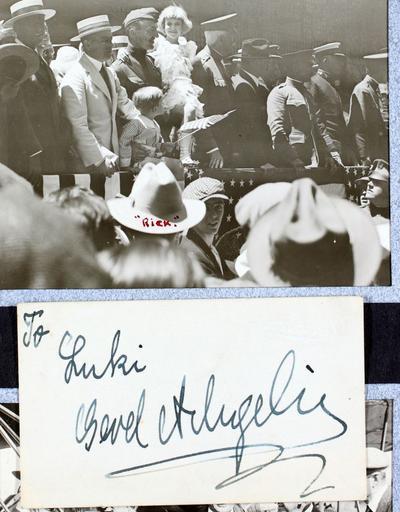 | Keywords: luke luqueer lukeluqueer aviation golden age goldenage auto racing autoracing aviator race car driver racecardriver fighter ace fighterace ace edward vernon rickenbacker edwardvernonrickenbacker edward v. rickenbacker edwardvrickenbacker edward rickenbacker edwardrickenbacker eddie rickenbacker eddierickenbacker rickenbacker medal of honor medalofhonor moh congressional medal of honor congressionalmedalofhonor cmoh text From the Frank S. "Luke" Luqueer Photo Collection The Frank S. "Luke" Luqueer Photograph Collection is composed of 4 large albums covering from the 1920s to the 1950s. The albums contain historic photos and correspondences from many important historical figures such as Jack Frye, Pat Amelia Earhart, Wiley Post, Howard Hughes, Hap Arnold, Jimmy Doolittle, Art Goebel, Charles Lindbergh, Douglas McArthur, and Ruth Elder to name a few. Many of the images have been autographed. Frank Luqueer is a notable aviation photographer. He bought his first camera in 1903 and devoted much of his life to taking photos of historic personalities and events in aviation history. Repository: San Diego Air and Space Museum Archive From the Frank S. "Luke" Luqueer Photo Collection The Frank S. "Luke" Luqueer Photograph Collection is composed of 4 large albums covering from the 1920s to the 1950s. The albums contain historic photos and correspondences from many important historical figures such as Jack Frye, Pat Amelia Earhart, Wiley Post, Howard Hughes, Hap Arnold, Jimmy Doolittle, Art Goebel, Charles Lindbergh, Douglas McArthur, and Ruth Elder to name a few. Many of the images have been autographed. Frank Luqueer is a notable aviation photographer. He bought his first camera in 1903 and devoted much of his life to taking photos of historic personalities and events in aviation history. Repository: San Diego Air and Space Museum Archive |
