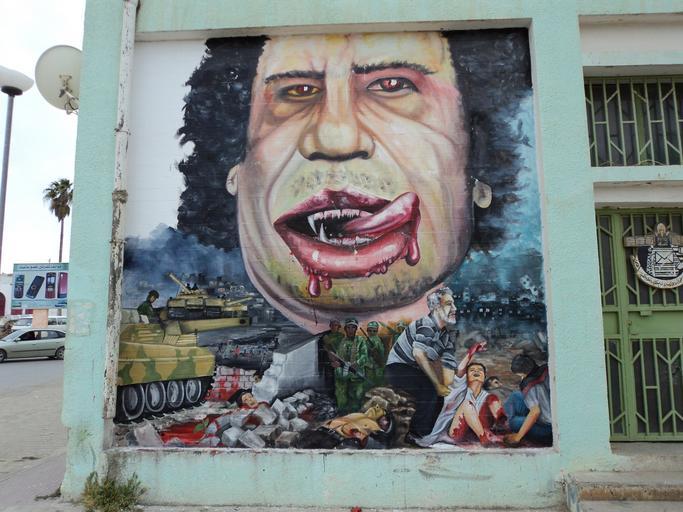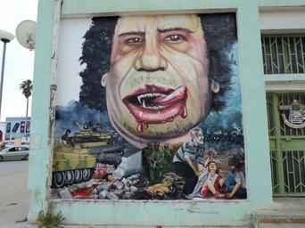 | Keywords: Al Bayda caricatures of Gadafi.JPG confirm Caricatures of Gaddafi which is enjoying above the skulls own User ليبي_صح 2011-04-20 Cc-zero Photographs taken on 2011-04-20 Demonstrations and protests against the Government of Libya in the Libyan civil war held in Al Bayda Caricatures of Muammar al-Gaddafi Graffiti of Muammar al-Gaddafi Murals of politicians Political art |
