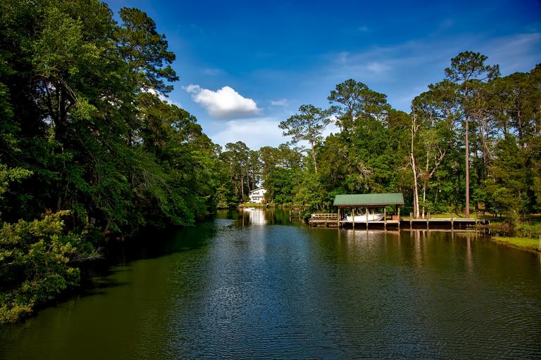 Keywords: alabama lake water reflections scenic sky clouds landscape forest trees woods boat boathouse house home nature outdoors countryside rural hdr
