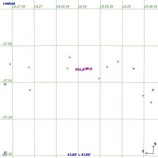 Keywords: Aladin2011.05.14-Sagittarius X-7.png en Sky plot of the astronomical objects in the SIMBAD database within the error box for Sagittarius X-7 Credit Aladin at SIMBAD Me at SIMBAD using Aladin url http //simbad u-strasbg fr/simbad/ Me and Aladin at SIMBAD 2011-05-14 I sent an email to Pierre Fernique astro unistra fr to ask about PUBLIC Domain use of Aladin skyplots He emailed back that First of all thanks to use Simbad and Aladin to generate your sky plots There is absolutely no problem to use them for Wikipedia pages A citation of Aladin would be appreciated Best regards Pierre Fernique Legend X - X-ray source magenta - UV source red - star blue oval - galaxy red diamond - IR object RRLyr - RR Lyrae star LMXB - low-mass X-ray binary Cc-zero X-ray astronomy Astronomical diagrams |
