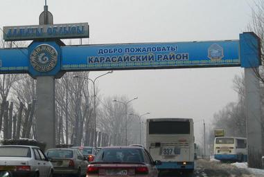 Keywords: ALAKarasay.jpg en The sign at the entrance to the Karasay district Almaty Province from Almaty city ru А ка на въезде в Ка асайский айон Алма-Атинской области из го ода Алма-Аты own Ds02006 2010-01-23 43 232597 76 789303 Almaty Province