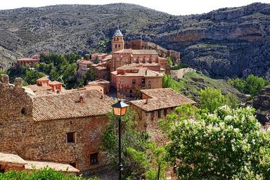 Keywords: albarracin village valley buildings mountain scenic landscape traditional town