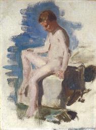 Keywords: Albert Anker - Studie eines sitzenden Akts (ca. 1865).jpg Artwork Creator Albert Anker 1865 oil canvas cardboard cm 23 17 object history credit line accession number http //www sikart ch/Werke aspx id 6002315 Schweizerisches Institut für Kunstwissenschaft SIK-ISEA inventory number 67979 PD-old-100 Albert Anker Bathing males in art Paintings of nude boys 1865 paintings Images from SIKART