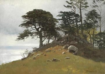 | Keywords: Albert Bierstadt - Cypress Point, Monterey.jpg Artwork Creator Albert Bierstadt 1879 oil paper cardboard in 14 19 accession number object history With Coe Kerr Gallery New York New York<br/>With Montgomery Gallery San Francisco California<br/>Private collection San Francisco California credit line exhibition history Palm Springs California Palm Springs Desert Museum 100 Years of American Art January 26 - March 4 1979 ABierstadt ~ lower right signature http //www bonhams com/auctions/19125/lot/1026/ Bonhams San Francisco 6 Apr 2011 lot 1026 PD-old-auto-1923 1902 Landscape paintings of the United States by Albert Bierstadt Images from Bonhams |