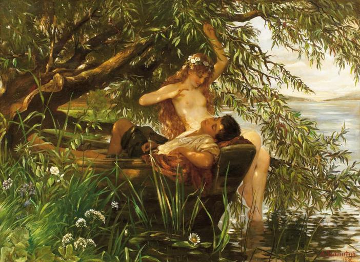 Keywords: Albert Tschautsch - Verzauberung (1896).jpg Albert Tschautsch 1843 - 1922 date 1896 oil canvas cm 96 134 accession number object history credit line exhibition history A Tschautsch 1896 ~ lower right signature / date http //www lot-tissimo com/de/i/461852/tschautsch-albert-1843-seelow-in-der-mark-ca-1899-berlin-verzauberung-oel-lwd-96-x-134-cm-sign-und Kunst Auktionshaus Kastern Hannover 28 11 2009 via lot-tissimo com PD-old-auto-1923 1922 Albert Tschautsch Paintings of couples Undine |
