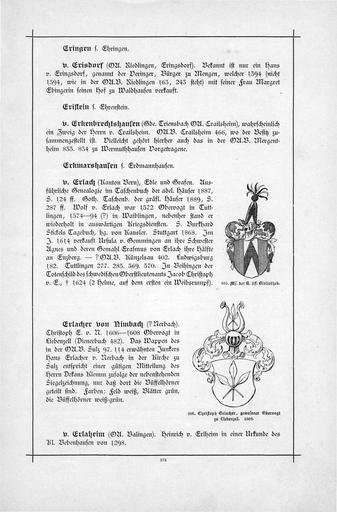 Keywords: Alberti Wappenbuch H03 S 0173.jpg S_0172 S_0174 Eringen von Erisdorf Eristein von Erkenbrechtshausen von Erlach Erlacher von Nimbach von Erlaheim Coats of arms of Erlach family Erkenbrechtshausen family