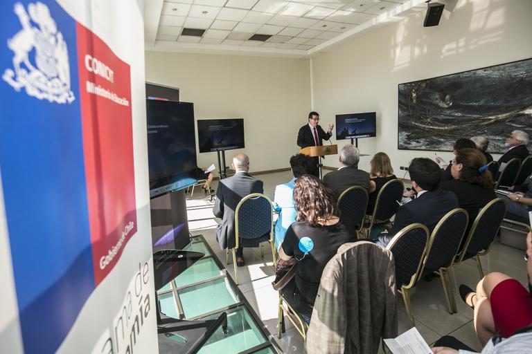 Keywords: “Alcanzando las Estrellas: Hallazgos de las Cumbres Chileno-Estadounidenses de Educación y Difusión de la Astronomía”, es el nombre del documento dado a conocer hoy y que representa el mayor esfuerzo nacional por coordinar estrategias en pos de potenciar la educación y difusión de la disciplina entre Chile y sus socios internacionales. Este informe sintetiza las ideas de más de cien expertos, representantes de 50 instituciones chilenas y extranjeras, que reconocieron el enorme potencial que posee Chile para convertirse en un referente mundial en educación y difusión pública de esta disciplina. Instituciones como los observatorios estadounidenses, conformados por AUI, AURA y Carnegie Institution for Science), la Embajada de Estados Unidos en Chile, CONICYT, Fundación Imagen de Chile y la Fundación Nacional de Ciencias de los Estados Unidos (NSF) participaron en las Cumbres Chileno-Estadounidenses de Educación y Difusión de la Astronomía. Para el año 2025 se proyecta que Chile poseerá el 75% de la capacidad de observación astronómica mundial. Con esta infraestructura no sólo se pueden responder preguntas que vinculan a la humanidad con el Universo, sino que el ser humano también es beneficiado educativamente en diversas áreas del saber. Para el embajador Gabriel Rodríguez, director de Energía, Ciencia y Tecnología e Innovación, del Ministerio de Relaciones Exteriores de Chile, “la astronomía no sólo permite responder preguntas sobre el origen de la vida y nuestro lugar en el cosmos, sino que además es una ciencia que nos acerca a la experiencia de transformar misterios ancestrales en conocimiento científico, a la vez que en saber cultural y sabiduría ciudadana, apropiados para hacer más humanos a todos los habitantes del planeta”. “El esfuerzo ofrecido por cada uno de los profesionales nacionales y extranjeros que aportaron generosamente su experiencia individual para agrupar los distintos puntos de vista de lo que está ocurriendo actualmente en materia de educación y difusión de la astronomía en Chile y el resto del mundo, constituye un recurso de gran utilidad para visibilizar buenas prácticas, y además favorece la futura colaboración entre quienes desarrollan iniciativas en esta área”, enfatizó el astrónomo Eduardo Hardy, que presentó el documento en representación de los observatorios estadounidenses. Las cumbres fueron visualizadas por los participantes como una oportunidad única para abordar, como comunidad, los problemas de coordinación y evaluación estratégica en la educación y difusión de la astronomía en Chile. Estas áreas de trabajo están desarrolladas en siete capítulos, y corresponden, por una parte, a la situación específica que experimenta en el plano nacional la educación y difusión de la astronomía en cinco campos ligados históricamente o en forma reciente con esta ciencia: la Educación Básica y Media; los planetarios, museos, centros de investigación y desarrollo científico y la educación no formal; los observatorios científicos internacionales; las universidades; y el astroturismo y los observatorios municipales y turísticos. Al final de cada capítulo se presenta un listado de recomendaciones y áreas de exploración futura, elaborado por cada grupo de trabajo. Las primeras se entienden como acciones concretas que, a juicio de los participantes, son posibles de implementar en el mediano y corto plazo. Las áreas de exploración futura, por su parte, corresponden a temas que requieren un mayor estudio y análisis antes de convertirse en recomendaciones factibles de ser implementadas. “Estamos conscientes que no sólo debemos centrar nuestra actividad en la entrega de fondos a los investigadores, para que lleven adelante proyectos a un nivel competitivo; también reconocemos la importancia y atractivo que despierta la disciplina en la sociedad. Por ello, pensamos que el rol de la astronomía en la educación de la ciencia debe transformarse en objetivo prioritario, en un tema clave para introducir un cambio”, comentó Christian Nicolai, director ejecutivo de CONICYT. Al finalizar la ceremonia, la profesora del Colegio Carlos Condell de la Haza, de La Serena, María Rebeca López, entregó a representantes de CONICYT el documento para que las recomendaciones y áreas de exploración que este texto incluye, sean puestas en acción con el respaldo de la principal institución pública del campo científico en Chile. "Estoy convencida que este documento será una brújula para nuestras autoridades a fin de potenciar y, ojala, priorizar a la astronomía como parte de nuestra identidad. Esta ciencia al alcance de mis estudiantes, contribuye e impulsa a que adquieran una visión mas amplia y enriquecedora del mundo en que les ha tocado vivir”, subrayó la docente. “Alcanzando las Estrellas: Hallazgos de las Cumbres Chileno-Estadounidenses de Educación y Difusión de la Astronomía”, es el nombre del documento dado a conocer hoy y que representa el mayor esfuerzo nacional por coordinar estrategias en pos de potenciar la educación y difusión de la disciplina entre Chile y sus socios internacionales. Este informe sintetiza las ideas de más de cien expertos, representantes de 50 instituciones chilenas y extranjeras, que reconocieron el enorme potencial que posee Chile para convertirse en un referente mundial en educación y difusión pública de esta disciplina. Instituciones como los observatorios estadounidenses, conformados por AUI, AURA y Carnegie Institution for Science), la Embajada de Estados Unidos en Chile, CONICYT, Fundación Imagen de Chile y la Fundación Nacional de Ciencias de los Estados Unidos (NSF) participaron en las Cumbres Chileno-Estadounidenses de Educación y Difusión de la Astronomía. Para el año 2025 se proyecta que Chile poseerá el 75% de la capacidad de observación astronómica mundial. Con esta infraestructura no sólo se pueden responder preguntas q