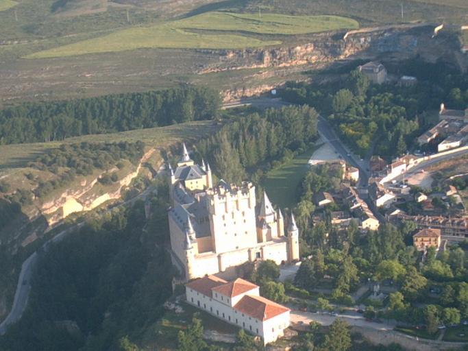 Keywords: Alcazar de Segovia vista aerea.jpg es Vista aerea del Alcazar de Segovia hecha desde un globo aero-estático own Antonio Castillo Torija 2008-03-23 Cc-zero Exterior of the Alcázar of Segovia