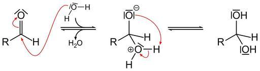 | Keywords: Aldehyde hydrate formation.svg ValidSVG Mechanismus der nukleophilen Addition eines Wassermoleküls an eine Aldehyd-Funktionalität Mechanism of the nucleophilic addition of a water molecule to an Aldehyde group Own 2010-02-2 Sponk <span class signature-talk >talk</span> PD-chem Nucleophilic addition reactions Hydration reactions |