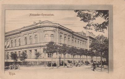 Keywords: Aleksandrovskaja gimnazija - Riga.jpg en Gimnasium of Alexander in Riga ru Александ овская гимназия в Риге Old postcard C Schulz конец XIX века PD-old Schools in Riga Jānis Fridrihs Baumanis