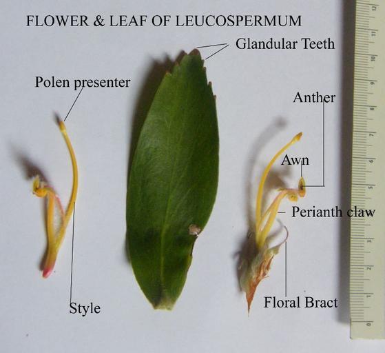 Keywords: ALEUCOS~1.jpg en Flower leaf of a leucospermum hybrid L glalabrum x totmentosum showing various parts Own Andrew massyn August 08 Noordhoek Cape Town Flower diagrams leucospermum