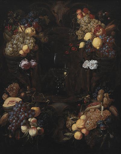 Keywords: Alexander Coosemans - Cartouche with Garlands of Fruit and a Wine Glass.jpg Artwork Q20268457 creator Alexander Coosemans en Cartouche with Garlands of Fruit and a Wine Glass 1651-1689 http //www smk dk/en/explore-the-art/search-smk/ /detail/KMSsp298 oil canvas cm 133 5 109 5 Institution Statens Museum for Kunst Copenhagen KMSsp298 object history credit line PD-old-100 Alexander Coosemans Flemish paintings in the Statens Museum for Kunst Baroque still life paintings of fruit Oil still-life paintings 17th-century allegorical paintings Garland of flowers frame in paintings Paintings of grapes |