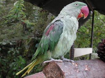 Keywords: Alexandrine Parakeet at Lochmara Lodge.jpg Female Alexandrine Parakeet at Lochmara Lodge Own 2011-10-10 Pseudopanax wikipedia en Psittacula eupatria captive