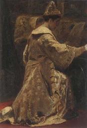 Keywords: Alexei Mikhailovich.jpg ru Литовченко Александ Дмит иевич 1835-1890 «Алексей ихайлович ца ь этюд » Location Госуда ственная Т етьяковская гале ея <br> Dimensions 46 2x32 3 см Этюд <br> Web source http //www rulex ru/rpg/portraits/33/33444 htm <br> Technique Oil on canvas 1886 Creator Alexander Litovchenko Museum Tretyakov Gallery credit line Tsar Alexis Praying before the relics of Metropolitan Philip PD-old-100