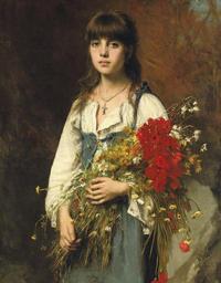 Keywords: Alexej Alexejewitsch Harlamoff Russian 18401925 Summertime.jpg Artwork Creator Alexei Harlamov oil canvas cm 105 5 73 5 accession number object history Anonymous sale; Christie's New York 27 October 1983 lot 122 <br/>with Frost and Reed London credit line exhibition history Harlamoff ~ lower right signature 1 http //poezietacuta blogspot com/ poezietacuta blogspot com<br/>2 christies online 5171780 7625 46 London 21 January 2009 PD-old-auto-1923 1925 DEFAULTSORT Harlamoff Alexei; Summertime Genre paintings by Alexei Harlamov Paintings of girls Temporary for Cat-a-lot - Female humans Standing People with flowers Neckwear in art Necklines in art Non-verbal communication People with neutral background Paintings with brown background Girls in art in three-quarter views Female arms in art People with jewellery People holding plants Standing females in art Females looking at viewer in art |