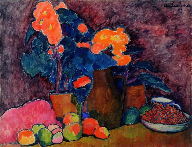 Keywords: Alexej von Jawlensky - Cvetje, sadje in vrč.jpg Artwork creator Alexej von Jawlensky 1909 oil canvas cm 70 90 8 Institution National Gallery of Slovenia NGS1363 PD-old-auto-1923 1941 DEFAULTSORT Alexej von Jawlensky still lifes Blumen Obst und Krug 1909 Alexej von Jawlensky 20th-century paintings in the National Gallery of Slovenia 20th-century still life paintings in Slovenia 1909 paintings in Slovenia 20th-century oil on canvas paintings in Slovenia Vases in still-life paintings 20th-century still life paintings of flowers Still life paintings of tableware Still life paintings of fruits 1900s still-life paintings |