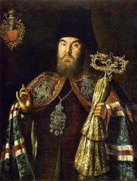 | Keywords: Alexey Antropov 012.jpg По т ет а хиепископа Сильвест а Кулябки 1760 г Госуда ственный Русский музей Г узный и одутловатый Сильвест Кулябка изоб ажён в полном епископском облачении в фелони клобуке с посохом и панагией а темном фоне одовой ге б Кулябок http //artclassic edu ru/catalog asp ob_no 2015263 http //www artsait ru/art/a/antropov/art1 php http //collection edu yar ru/dlrstore/3dd47118-4cd1-4a16-b00d-fdbfa0315b43/Antropov Portret_arkhiepiskopa_Silvestra_Kulyabki jpg 1760 creator Alexey Antropov PD-old-100 Alexey Antropov Files uploaded by Shakko from various sources Portraits of Russian priests 18th-century portraits in the Russian Museum Sylvester Kulyabka 18th-century portraits with coat of arms 18th-century men looking at viewer in art Portrait paintings of bearded men 18th-century oil on canvas paintings in Russia 1760 portrait paintings 1760s paintings in Spain |
