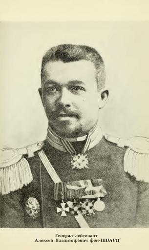 | Keywords: Alexey Shvarts.jpg Гене ал Алексей Владими ович фон Шва ц Скан из книги Шва ца Иванго од в 1914-1915 гг Author PD-old 1874 births 1953 deaths 20th-century men of Russia Black and white portrait photographs of men at bust length Black and white portrait photographs of military people in uniform Black and white photographs Emigrants from Russia Generals of the Russian Empire Immigrants to Argentina Immigrants to France People with medals People with moustaches Recipients of the Order of Saint George IV Class Russian military personnel of the Great War Russian military personnel of the Russo-Japanese War Russian diaspora in Argentina |