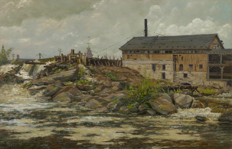 Keywords: Alexis Jean Fournier - Farnham's Mill at St. Anthony Falls, Minneapolis - 44.23 - Minneapolis Institute of Arts.jpg Landscape Minneapolis Minnesota 17 1/4 x 26 in 43 82 x 66 04 cm canvas 21 1/2 x 30 1/2 x 2 1/2 in 54 61 x 77 47 x 6 35 cm outer frame 44 23 https //api artsmia org/images/688/6308/large jpg Q1700481 Oil on canvas Edmund E Bates Minneapolis Minnesota;1 purchased by MIA in 1944 1 Various correspondence and memos dated throughout 1944 indicated that the painting was initially offered for sale to General Mills Inc who turned the work down Edmund Bates worked for the General Casualty Company Minneapolis; in one letter he mentions that his brother Gordon Bates owns four or five similar 'Minneapolis' pictures by Fournier see 'Lowry Hill Minneapolis' 50 14 Farnham's Mill at St Anthony Falls Minneapolis https //collections artsmia org/index php page detail id 688 Q20890763 |