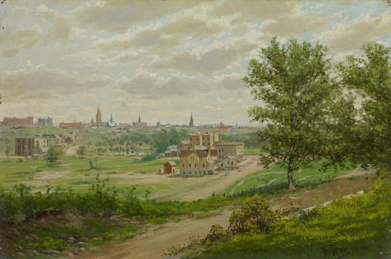 Keywords: Alexis Jean Fournier - Lowry Hill, Minneapolis - 50.14 - Minneapolis Institute of Arts.jpg Landscape Minneapolis Minnesota 16 1/4 x 24 in 41 28 x 60 96 cm outer frame 50 14 https //api artsmia org/images/803/6099/large jpg Q1700481 Oil on canvas Possibly Beard Art Galleries Minneapolis Minnesota Gordon Bates Minneapolis Minnesota;1 purchased by MIA in 1950 1 Gordon Bates was the brother of Edmund E Bates who also owned works by Fournier in the MIA collection see 'Farnham's Mill at St Anthony Falls Minneapolis' 44 23 In the Edmund Bates correspondence he mentions that his brother Gordon owns four or five similar 'Minneapolis' pictures by Fournier A note on the registrar object card states that the painting was purchased in Louisville Kentucky Lowry Hill Minneapolis https //collections artsmia org/index php page detail id 803 Q20890795 |