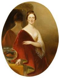 Keywords: Alfred Jacob Miller - Portrait of Mrs Decatur Howard Miller (Eliza Credilla Hare) - Walters 372557.jpg In this elegant colorful portrait a companion to Walters 37 2558 Miller excels as a portraitist He shows his sister-in-law standing with her back to a mirror which in turn reflects her bare neck and shoulders Hanging from her right shoulder is a red velvet drapery with a green lining Beside her on a table is a bowl containing a large goldfish Mrs Decatur H Miller née Eliza Credilla Hare was the daughter of Jesse Hare of Lynchburg Virginia and Baltimore and of Catherine Welch Her father was an extremely wealthy tobacco manufacturer who introduced the use of licorice in the manufacture of chewing tobacco Eliza was married to D H Miller on October 14 1847 c 1850 Oil on canvas cm 121 29 93 35 accession number 37 2557 34203 Mrs L Vernon Miller Sr Walters Art Museum Gift of Mrs L Vernon Miller Sr 1978 Alfred Jacob Miller An Artist on the Oregon Trail Alfred Jacob Miller Maryland and the West The Walters Art Gallery Baltimore; Frostburg State University Frostburg; Jewish Community Center of Greater Washington Rockville; Washington College Chestertown 1988 place of origin Baltimore Maryland USA Walters Art Museum license 2D Alfred Jacob Miller An Artist on the Oregon Trail Paintings by Alfred Jacob Miller in the Walters Art Museum 19th-century portrait paintings in the Walters Art Museum 1850c 1850 oil on canvas paintings in the United States Portrait 1850 portrait paintings 19th-century oil oval portraits of women at three-quarter length 1850c 19th-century oil portraits of standing women at three-quarter length 1850c 19th-century portrait paintings with animals 1850c Goldfish bowls in art Portrait paintings of women with animals 1850c Portraits with mirror Females with mirrors |