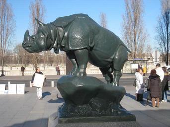 | Keywords: Alfred Jacquemart - Rhinocéros.JPG Alfred Jacquemart - Rhinocéros - parvis du Musée d'Orsay Paris France This statue is old enough so that copyright if any has long since expired <p>Rhinocéros was commissioned for the 1878 Exposition Universelle and placed in the garden of the Palais du Trocadéro When the Palais was demolished the sculpture was located c 1935 to 1985 at Porte de Saint-Cloud Paris In 1986 it was assigned to the Musee d'Orsay Paris restored and placed on display in the forecourt </p> <p>Sources Horswell Jane 1971 Bronze sculpture of Les Animaliers references and price guide Clopton England Antique Collectors' Club p 292 http //www musee-orsay fr/fr/collections/catalogue-des-oeuvres/notice html no_cache 1 nnumid 016045 cHash 79133f2d1f Musee d'Orsay online catalogue retrieved 21 Jan 2014 </p> own I took this photograph 2008-02-08 Daderot Own work all rights released Public domain Rhinocéros by Alfred Jacquemart |