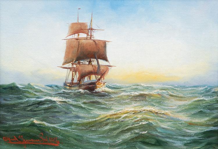 | Keywords: Alfred Jensen - Dreimaster auf See.jpg Alfred Jensen 1859-1935 date 1914 oil canvas cm 24 34 accession number object history credit line http //www auktionshaus-stahl de/298/items/dreimaster-auf-see html www auktionshaus-stahl de PD-old-auto-1923 1935 Alfred Jensen marine painter 20th-century sailing ships in paintings Images from Auktionshaus Stahl 1914 paintings |