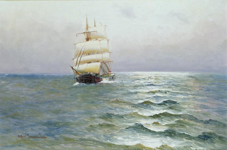 Keywords: Alfred Jensen - Großsegler.jpg Alfred Jensen 1859-1935 Title Tall Ship Großsegler late other date century 19 oil canvas cm 54 80 5 Private Collection object history sold at Agra Art Warsaw Prof Alfred Jensen ~ lower left signature 251750 Other versions PD-old-auto-1923 1935 Alfred Jensen marine painter 19th-century oil on canvas paintings Oil paintings of watercraft 19th-century sailing ships in paintings Oil paintings of seascapes 1851-1900 paintings