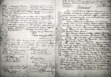 Keywords: Alfred Nobels will-November 25th, 1895.jpg Alfred Nobels last will dated november 27th 1895 Alfred Nobels letztes Testament vom 27 November 1895 Alfred Nobels sista testamente från den 27 november 1895 Alfred Nobel 2008-12-05 Photograph Prolineserver <span class signature-talk >talk</span> <br>Document Alfred Nobel <span class plainlinks >PD-Art in Sweden</span> <br/> Under http //www sweden gov se/download/129882cd pdf major 1 minor 12248 cn attachmentDuplicator_1_attachment Article 49 a anyone who has produced a photographic picture has an exclusive right to reproduce the picture and to make it available to the public This right subsists until 50 years have elapsed from the year in which the picture was produced Last Will and Testament of Alfred Nobel Transciption ;right hand side No 73 År 1897 den 5 Februari upprist vid vi Stockholms Rådstufvurätts Stjette Afdelning; bet ex officio aut Jacob Linders <big><u>Testament</u></big> Jag undertecknad Alfred Bernhard Nobel förklarar härmed efter moget betänkade min yttersta vilja i afseende å den egendom jag vid min död kan ef- terlemna vara följande Mina brorssöner Hjalmar och Ludvig Nobel söner af min Broder Robert Nobel erhålla hvardera en summa af Två Hundra Tusen Kronor; Min Brorsson Emmanuel Nobel erhåller Tre Hundra Tusen och min Brorsdotter Mina Nobel Ett Hundra Tusen Kronor; Min Broder Robert Nobels döttrar Ingeborg och Tyra erhålla hvardera Ett Hundra Tusen Kronor; Fröken Olga Boettger för närvarande boende hos Fru Brand 10 Rue St Florentin i Paris erhåller Ett Hundra Tusen Francs; Fru Sofie Kapy von Kapivar hvars adress är känd af Anglo-Oesterreichische Bank i Wien är berättigad till en lifränta af 6000 Floriner Ö W som betalas henne af sagde Bank och hvarföre sig i denna Bank deponerat 150 000 Fl Ungerska Statspapper Herr Alarik Liedbeck boende 26 Sturegatan Stockholm erhåller Ett Hundra Tusen Kronor; Fröken Elise Antun boende 32 Rue de Lubeck Paris är berättigad till en lifränta af Två Tusen Fem Hundra Francs Dessutom innestår hos mig för närvarande Fyratio åtta Tusen Francs henne till- hörigt Kapital som äger att till henne återbetalas; Herr Alfred Hammond Waterford Texas United States erhåller Tio Tusen Dollars; Fröknarna Emmy Winkelmann och Marie Winkel- <small> ;back side mann Potsdamerstrasse 51 Berlin erhålla hvardera Femtio Tusen Mark; Fru Gaucher 2 bis Boulevard du Viaduc Nîmes Frankrike erhåller Ett Hundra Tusen Francs; Mina tjenare Auguste Oswald hans hustru Alphonse Tournand anstäld vid mitt laboratorium i Sanremo erhålla hvardera en lifränta af Ett Tusen Francs; Mina förra tjenare Joseph Girardot 5 Place St Laurent Châlons sur Saône Frankrike äro berättigade till en lifränta af Fem Hundra Francs samt min förra trädgårdsmästare Jean Lecof hos Fru Desoutter receveur Curaliste Mesnil Aubry pour Ecouen S O Frankrike till en lifränta af Tre Hundra Francs Herr Georges Fehrenbach 2 Rue Compiègne Paris har rätt att lyfta en pens af Fem Tusen Franc årligen d 1 Januari till och med 1 Januari 1899 då den upphör Mina Brorsbarn Hjalmar Ludvig Ingeborg och Tyra hafva hvardera hos mig mot quitto innestående Tjugo Tusen Kronor som till dem återbetalas; Öfver hela min återstående realiserbara förmögenhet förfogas på följande sätt kapitalet af utredningsmännen realiserade till säkra värdepapper skall utgöra en fond hvars ränta årligen utdelas som prisbelöning åt dem som under det förlupne året hafva gjort menskligheten den största nytta Räntan delas i fem lika delar som tillfalla en del den som inom fysikens område har gjort den vigtigaste upptäckt eller uppfinning; en del den som har gjort den vigtigaste kemiska upptäck eller förbättring; en del den som har gjort den vigtigaste upptäckt inom fysiologiens eller medicinens domän; en del den som inom litteraturen har producerat det utmärktaste i idealisk rigtning; och en del åt den som har verkat mest eller best för folkens förbrödrande och afskaffande eller minskning af stående armeer samt bildande och spridande af fredskongresser Prisen för fysik och kemi utdelas af Svenska Vetenskapsakademien; för fysiologiska eller medicinska arbeten af Carolinska institutet i Stockholm; för litteratur af Akademien i Stockholm samt för fredsförfäktare af ett utskott af fem personer som väljas af Norska Stortinget Det är min uttryckliga vilja att vid prisutdelningarne intet afseende fästes vid någon slags nationalitetstillhörighet sålunda att den värdigaste erhåller priset antingen han är Skandinav eller ej Till Exekutorer af dessa mina testamentariska dispositioner förordnar jag Herr Ragnar Sohlman bosatt vid Bofors Vermland och Herr Rudolf Liljequist 31 Malmskillnadsgatan Stockholm och Bengtsfors i närheten av Uddevalla Som ersättning för deras omsorg och besvär tillerkänner jag Herr Ragnar Sohlman som antagligen kommer att egna mesta tid deråt Ett Hundra Tusen Kronor och Herr Rudolf Liljequist Femtio Tusen Kronor Min förmögenhet består för närvarande dels i fastigheter i Paris och San Remo; dels i värdepapper förvarade i Union Bank of Scotland Ld i Glasgow och London i Crédit Lyonnais Comptoir National d'Escompte och hos Alphen Messin Co i Paris; hos fondsmäklaren M V Peter fr Banque Transatlantique äfvenledes i Paris; hos Direction der Disconto Gesellschaft samt Joseph Goldschmidt Cie i Berlin; i Ryska Riksbanken samt hos Herr Emmanuel Nobel i Petersburg; i Skandinaviska Kreditaktiebolaget i Göteborg och Stockholm; </small> ;left hand side i Enskilda Banken i Stockholm samt i min Kassakista 59 Avenue Malakoff Paris; och dels i utestående fordringar patenter mig tillkommande patentafgifter eller såkallad royalty med mera hvar- öfver utredningsmännen finna uppgift i mina papper och böcker Detta testamente är hittills det enda giltiga och upphäfver alla mina föregående testamentariska bestämmelser om sådane skulle förefinnas efter min död Slutlig