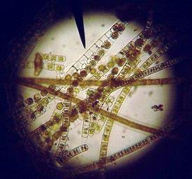 Keywords: Algaeconjugate.jpg I took this image using a digital camera and a compound light microscope at a total magnification of 100X This is fresh water green algae collected from the scum on the top of a pond in February 2007 in Waxahachie Texas The weather had been warm and was turning cold again I think that it induced these algae to conjugate The pointer is showing conjugating filamentous green algae The two strands are still separate at the bottom where the cells have not yet conjugated As the strands get closer together a sex pilus is formed and one cell moves across to fuse with the other cell The empty cell walls in the other strand can clearly be seen User Rozzychan Rozzychan 13 05 17 February 2007 UTC own 2010-02-15 Rozzychan talk Uploads I took this image using a digital camera and a compound light microscope at a total magnification of 100X This is fresh water green algae collected from the scum on the top of a pond in February 2007 in Waxahachie Texas The weather had been warm and was turning cold again I think that it induced these algae to conjugate The pointer is showing conjugating filamentous green algae The two strands are still separate at the bottom where the cells have not yet conjugated As the strands get closer together a sex pilus is formed and one cell moves across to fuse with the other cell The empty cell walls in the other strand can clearly be seen Rozzychan 13 05 17 February 2007 UTC Rozzychan~enwiki en Original upload log en wikipedia ftcg page en wikipedia Algaeconjugate jpg wikitable - 09 33 15 February 2010 954 × 890 126 060 bytes Bob Blaylock w en <nowiki> I hope the creator of the original version doesn't mind but this file seemed to be desperately in need of some minor adjustments which I have performed under PhotoShop </nowiki> - 13 05 17 February 2007 954 × 890 114 533 bytes Rozzychan~enwiki w en <nowiki>I took this image using a digital camera and a compound light microscope at a total magnification of 100X This is fresh green algae collected from the scum on the top of a pond in February 2007 in Waxahachie Texas The weather had been warm and was turn</nowiki> Uncategorized 2015 August 16 |