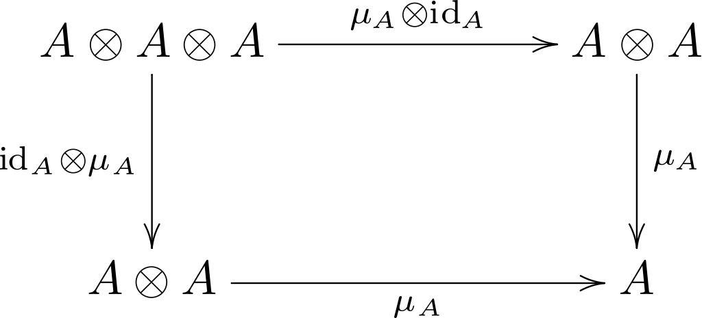 Keywords: Algebra-Associativity.svg Die Multiplikation <math>\mu_A</math> einer Algebra <math>A</math> ist genau dann assoziativ wenn dieses Diagramm kommutiert Own 2006-08-11 Markus Schmaus Public Domain File Algebra-Associativity png Quelltext Siehe wikipedia de Benutzer Markus Schmaus/Kommutatives Diagramm <pre> latex \documentclassa4paper article \usepackagedvips matrix arrow ps color line curve frame xy \usepackage diagxye \thispagestyle empty \begin document \bfig \Square A \otimes A \otimes A` A \otimes A` A \otimes A` A ; \mu_A \otimes \mathrm id _A` \mathrm id _A \otimes \mu_A` \mu_A` \mu_A \efig \end document </pre> Commutative diagrams of binary operations Commutative squares associativity Images with LaTeX source code |
