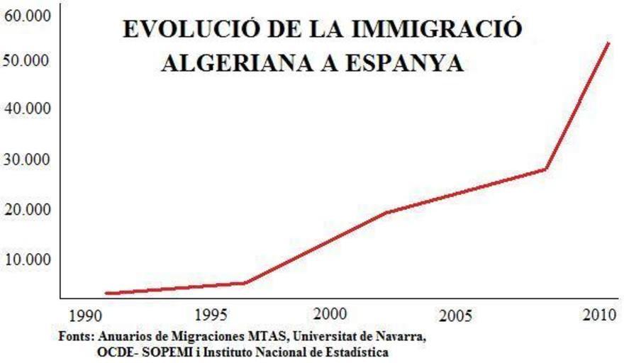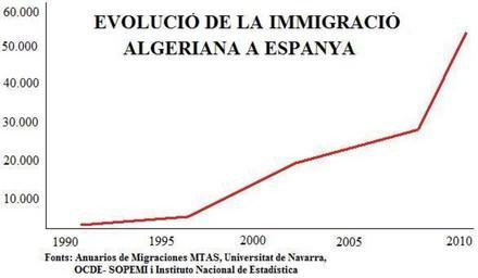 Keywords: Algerian immigration.jpg ca Evolució de la població immigrant algeriana a Espanya Fonts consultables als següents links http //www unavarra es/migraciones/papers3/comun24 28ComunicaciAnna 20MataRomeu pdf http //www ine es/ own Fajardoalacant 2010-10-21 immigracio algeriana jpg Immigration in Spain |