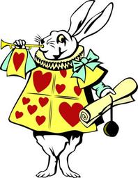 Keywords: alice in wonderland white rabbit hearts trumpet certificate childrens story apron book illustration lewis carroll